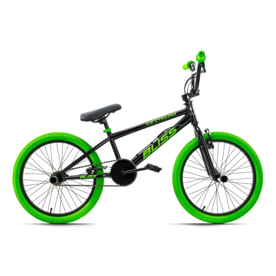 Das Bliss von KS Cycling kombiniert seinen komplett schwarzen Rahmen mit neon grünen Details und Reifen. Auffälliger geht’s nicht!