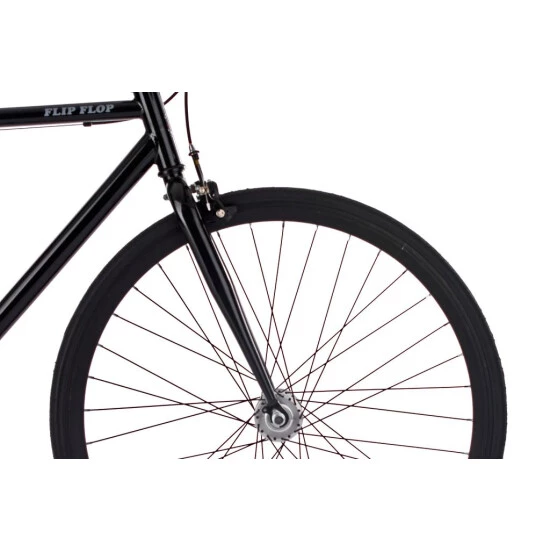 Schwarz wie die Nacht von Kopf bis Fuß: Das FLIP FLOP von KS Cycling ist ein Singlespeed-Fitnessbike, das eine klare Linie vertritt. Kompromissloses Design wird kombiniert mit einer soliden technischen Ausstattung.