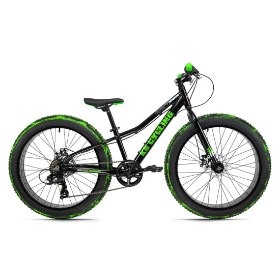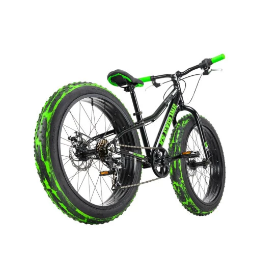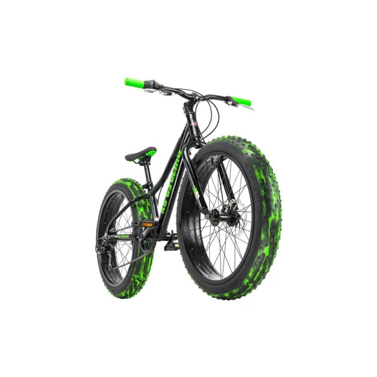 Das 24″ Aluminium-Fatbike CRUSHER 6217 von KS Cycling sieht vom Sattel bis hin zu den überdimensional fetten Felgen einfach hammermäßig aus. Der absolute Blickfang sind dabei natürlich die farbigen Muddy Green-Reifen, die perfekt zum Gesamtbild des Bikes passen.