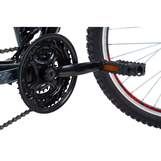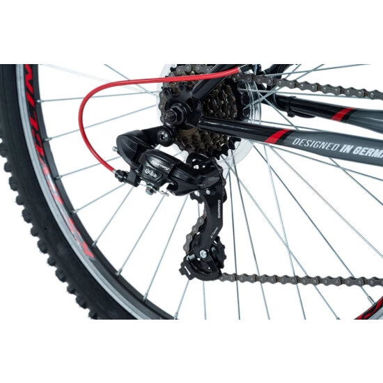Solide Komponenten, Hinterbaufederung und Federgabel sorgen für Komfort und Sicherheit. Das Mountainbike ist mit einer zuverlässigen 21-Gang-Kettenschaltung mit Drehschaltgriffen ausgestattet. Damit macht die flotte Runde durch den Wald einfach richtig viel Spaß!