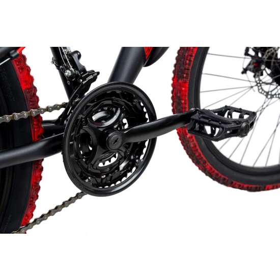 Das Bike ist mit einer 21-Gang-Schaltung ausgestattet, die komfortabel und intuitiv über Drehschaltgriffe bedient wird. Durch den vollgefederten Rahmen behalten Sie auch auf holprigen Strecken immer die Kontrolle. Für die sichere Verzögerung in jeder Situation sorgen dabei zwei Scheibenbremsen.