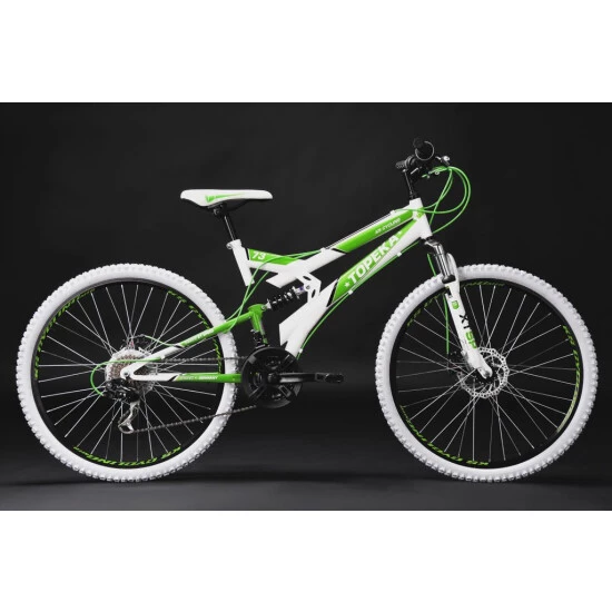 Der Star unter den Mountainbikes: Das 26″ Fully-MTB TOPEKA von KS Cycling ist mit giftgrünen Details auf dem weißen Rahmen gestaltet. Mit den weißen Reifen wird das Bike zum absoluten Hingucker!
