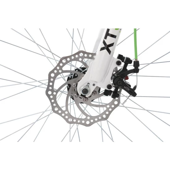 Das vollgefederte MTB ist mit einer 21-Gang-Kettenschaltung von SHIMANO ausgestattet, die mit Drehschaltgriffen bedient wird. Mechanische Scheibenbremsen an Vorder- und Hinterrad sorgen für gute Verzögerung.