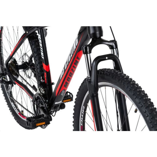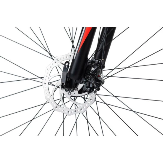 Scheibenbremsen ermöglichen sichere Verzögerung in allen Situationen und die Federgabel sorgt für ausreichend Komfort. Außerdem ist das Bike mit einer 21-Gang-Schaltung mit SHIMANO-Komponenten ausgestattet.