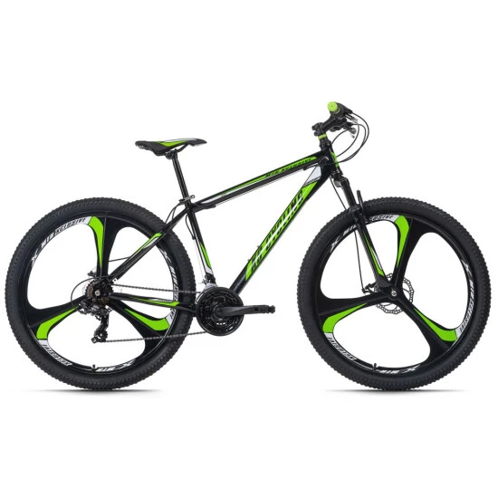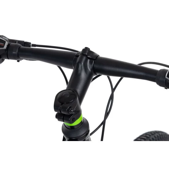 Rundum durchdacht: Das 29″ Hardtail-MTB „SHARP“ von KS Cycling ist ganz in Schwarz gehalten – aufgefrischt durch grüne Details, die alle Blicke auf sich ziehen. Die exklusiv geformten Rahmenrohre sorgen für ein einzigartiges Design.