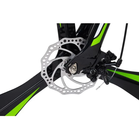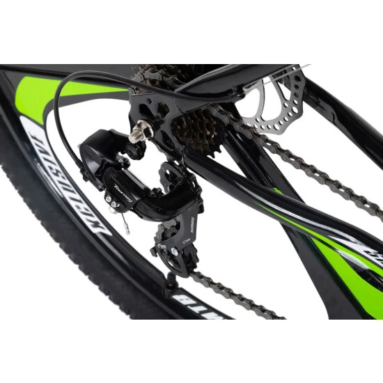 Scheibenbremsen ermöglichen sichere Verzögerung in allen Situationen und die Federgabel sorgt für ausreichend Komfort. Außerdem ist das Bike mit einer 21-Gang-Schaltung mit SHIMANO-Komponenten ausgestattet.