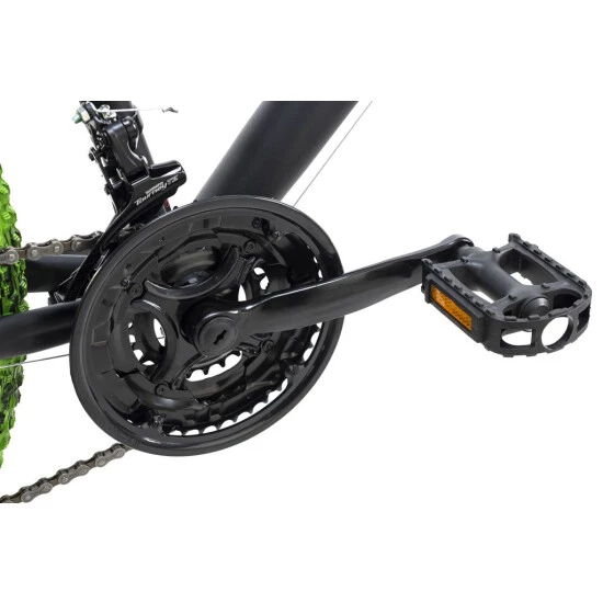 Jederzeit bereit, Vollgas zu geben: Das mattschwarze Hardtail-Mountainbike CRUSHER von KS Cycling macht mit Decals in Giftgrün und mit coolen „Destroyed“-Effekten immer eine gute Figur. Damit jedoch noch nicht genug: das Painting der Reifen wurde bei jedem Exemplar per Hand aufgetragen. So ist sichergestellt, dass es einen Reifen kein zweites Mal gibt! Jeder ist ein absolutes Unikat.