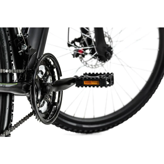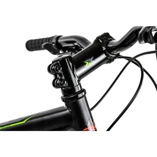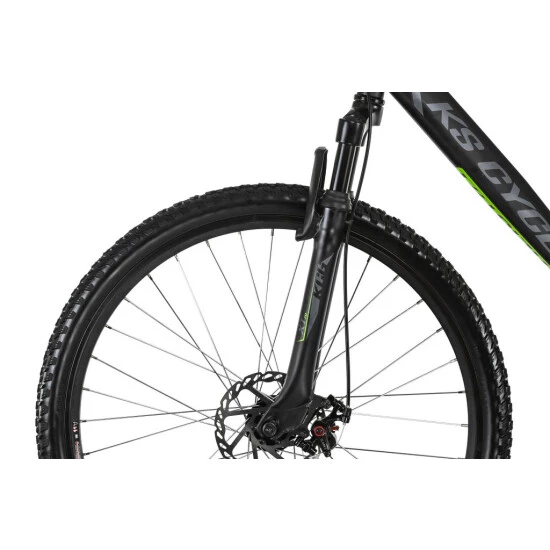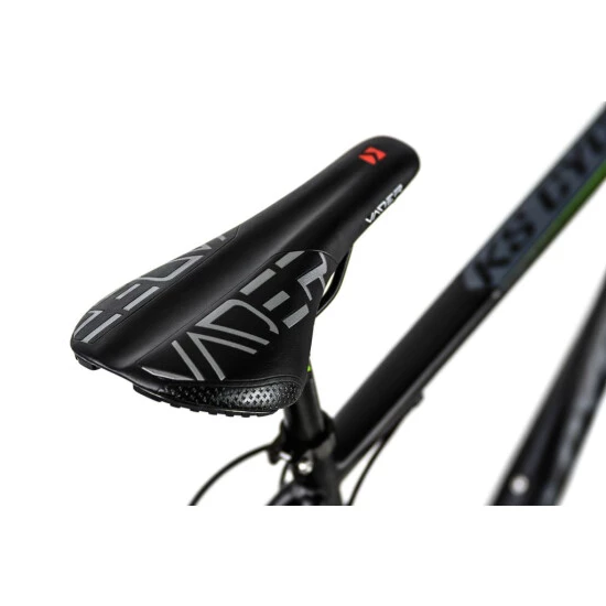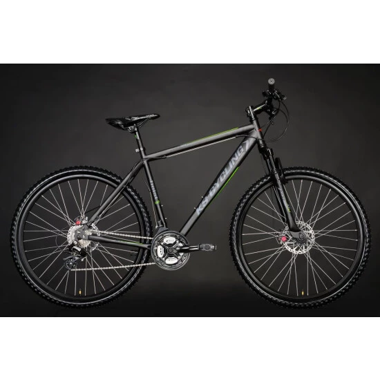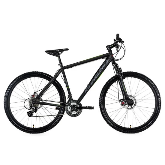 Das HEIST von KS Cycling setzt Maßstäbe in Sachen Design! Das 27,5″-Mountainbike begeistert mit seinem mattschwarzen Rahmen und den eleganten grünen und dunkelgrauen Decals.