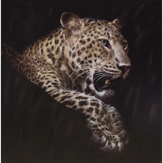 Dieses außergewöhnliche Wandbild wird zum absoluten Hingucker in jedem Raum. Jedes Bild wird von individueller Künstlerhand erschaffen, sodass ein in Nuancen einzigartiges Unikat entsteht. Um das Motiv besonders effektvoll in Szene zu setzen wurde nicht nur Farbe eingesetzt, sondern sogar echt-wirkende Haarstrukturen verwendet, die aufwendig in zahlreichen Bereichen des Bild eingearbeitet wurden. Das Motiv zeigt einen anmutigen Leoparden vor einem schwarzen Hintergrund, wodurch das Motiv entsprechend hervorgehoben wird und eine ausdrucksstarke Wirkung auf den Betrachter hat. Das handgemalte Bild wurde mit wasserbasierten Lacken auf Leinwand gebracht und anschließend auf einen stabilen Holzrahmen gespannt. An der Rückseite befindet sich am Rahmen eine Halterung, an der das Wandbild leicht aufgehängt und gerade ausgerichtet werden kann….