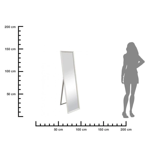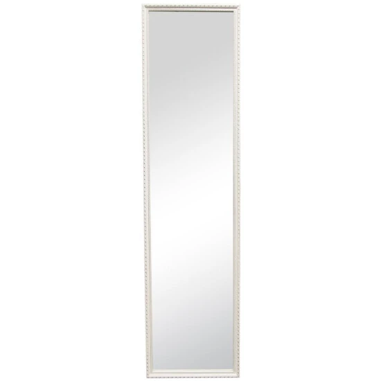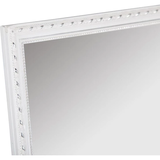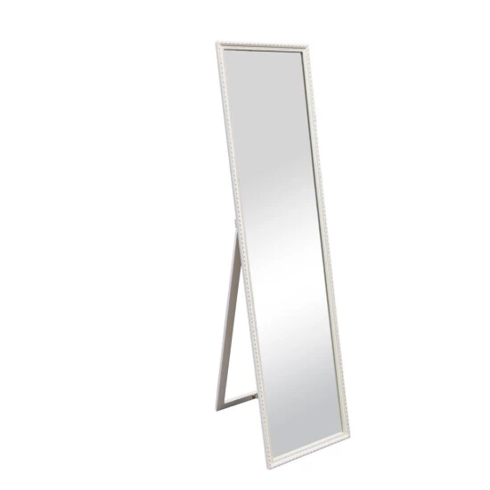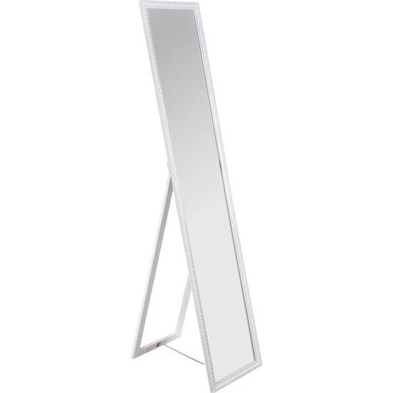 Zusammenfassung: Barockstil; außergewöhnlicher und neumoderner Look; Maß von B/H: ca. 34 x 160 cm; Rahmenbreite: 2,8 cm; Rahmentiefe: 2,1 cm; weißer Holzrahmen; Standspiegel; Ankleidespiegel;