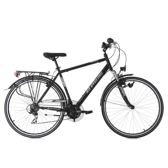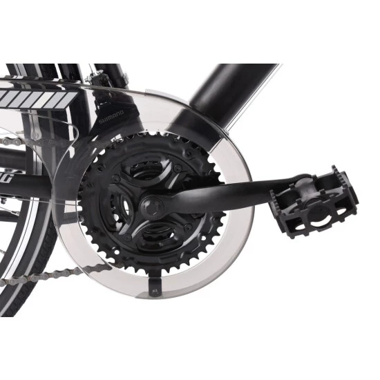 Das 28″ Trekking-Herrenfahrrad MONTREAL von KS Cycling ist Ihr alltagstauglicher Begleiter in jedem Gelände! Das schwarze Fahrrad ist mit hellgrauen Details gestaltet. Der transparente Kettenschutz rundet das Design ab.