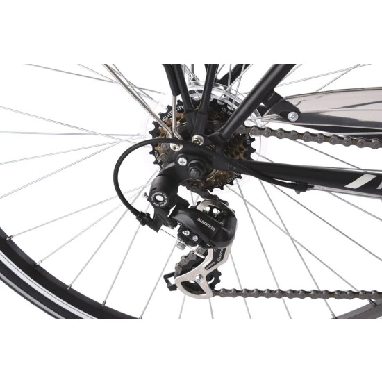 Mit der SHIMANO Kettenschaltung mit 21 Gängen sind Steigungen kein Problem mehr. Dank der Federgabel sind kleine Unebenheiten auf der Strecke fast nicht mehr zu spüren. Auf dem Gepäckträger bringen Sie Ihr Gepäck auch für längere Touren unter. Selbstverständlich ist das Fahrrad zudem mit einer Beleuchtungsanlage gemäß StVZO ausgerüstet. So können Sie sich jederzeit auf Ihren neuen Begleiter verlassen.