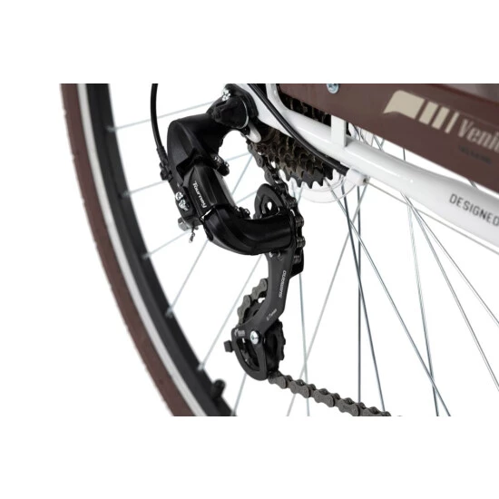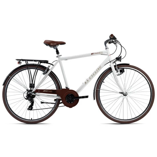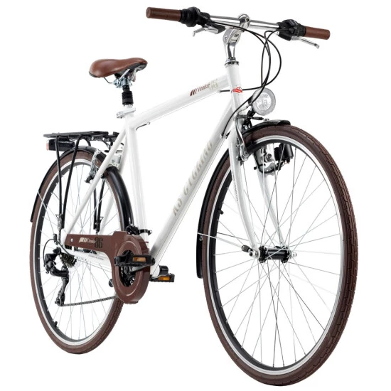Ob Sie bequem durch die Stadt fahren oder eine längere Tour planen möchten: Das 28″ Trekking-Herrenfahrrad VENICE von KS Cycling ist immer mit dabei! Das Fahrrad hat einen weißen Rahmen mit eleganten Details. Außerdem sind Reifen, Kettenschutz, Sattel und Griffe in der gleichen Farbe gehalten und runden das Design ab.